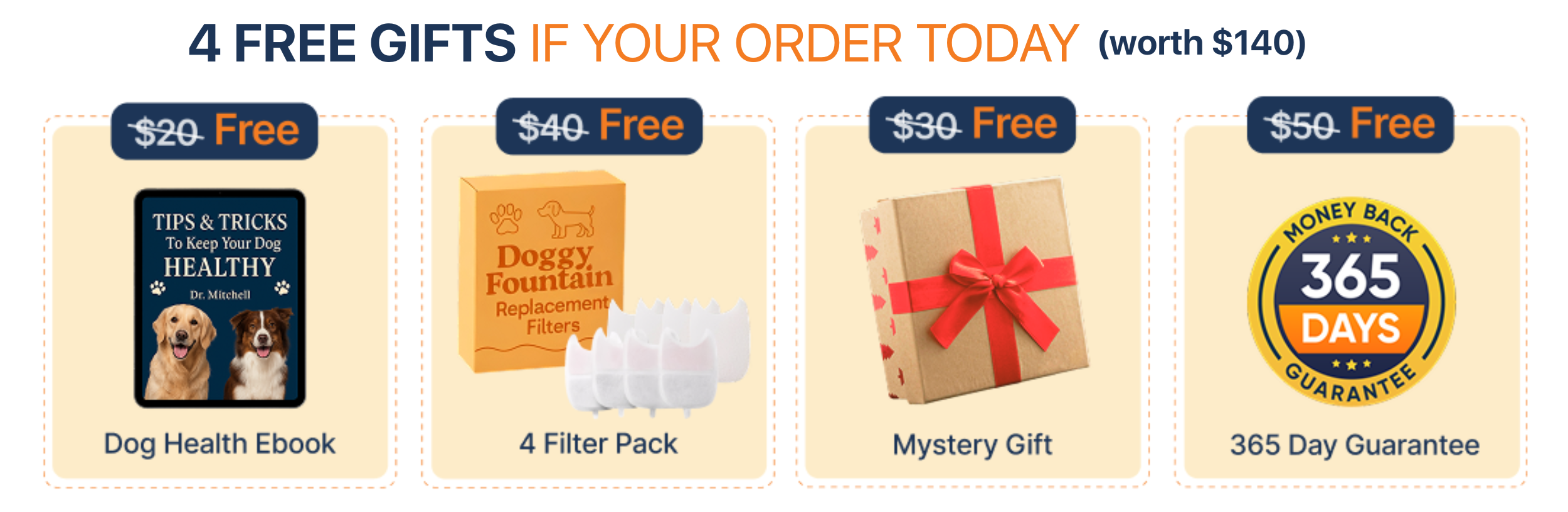 When you upgrade to the Doggy Fountain today, here’s everything you get: