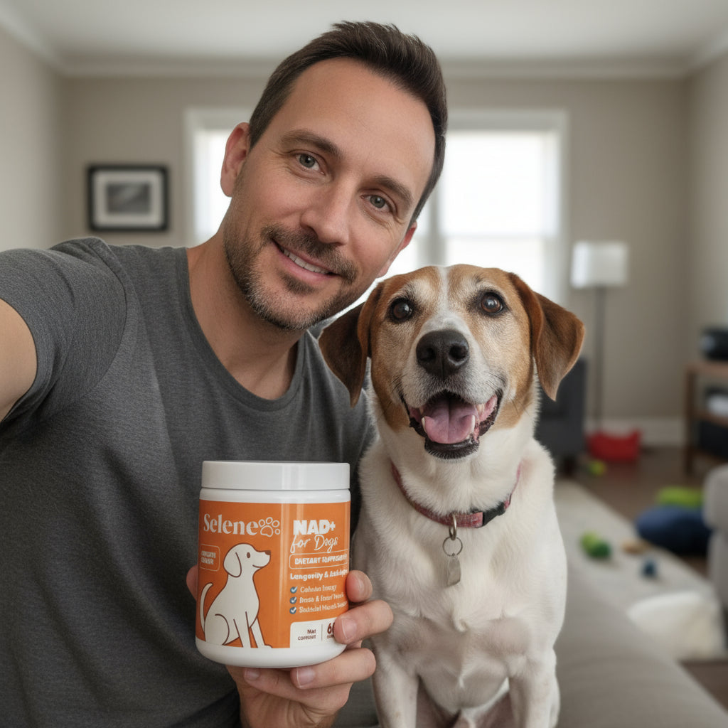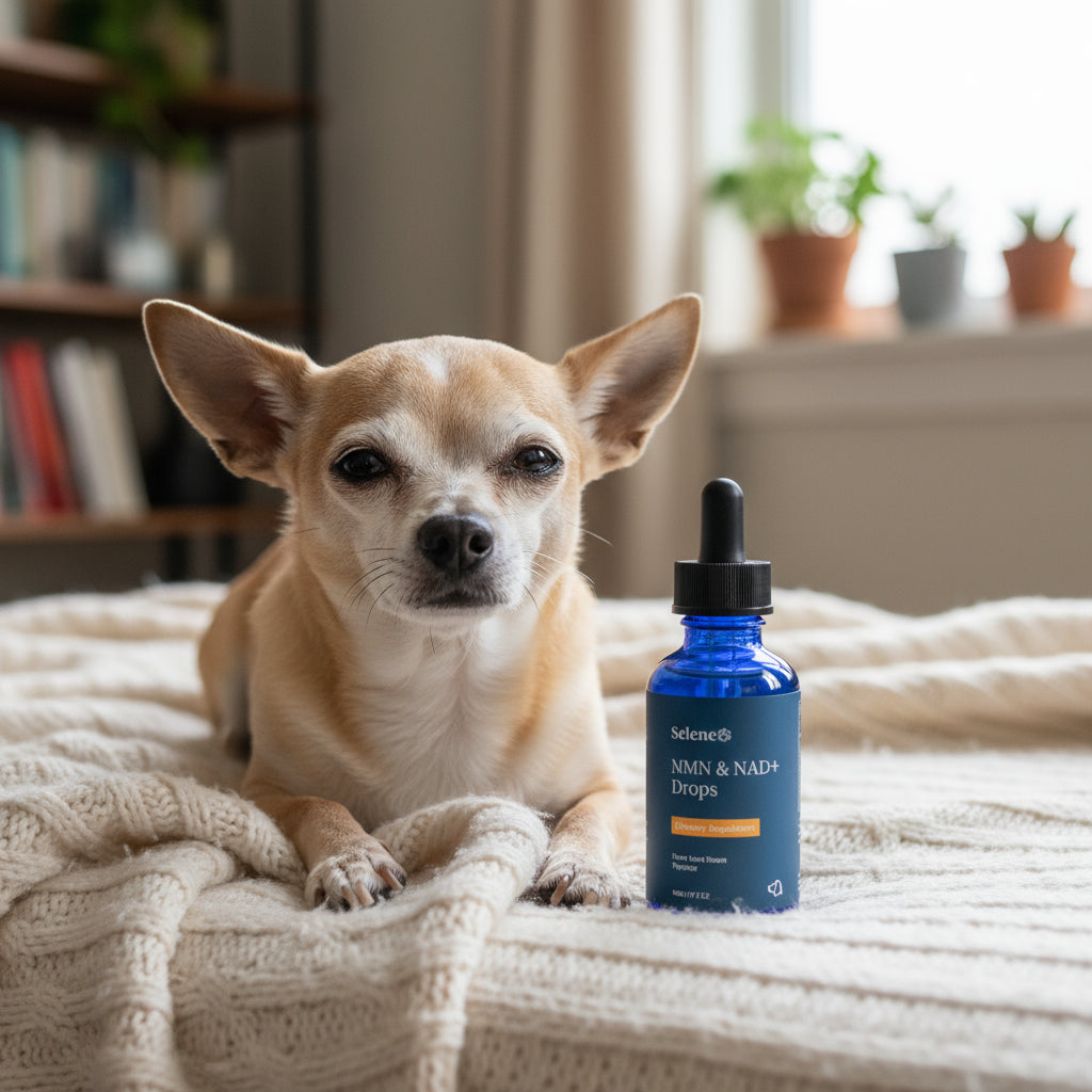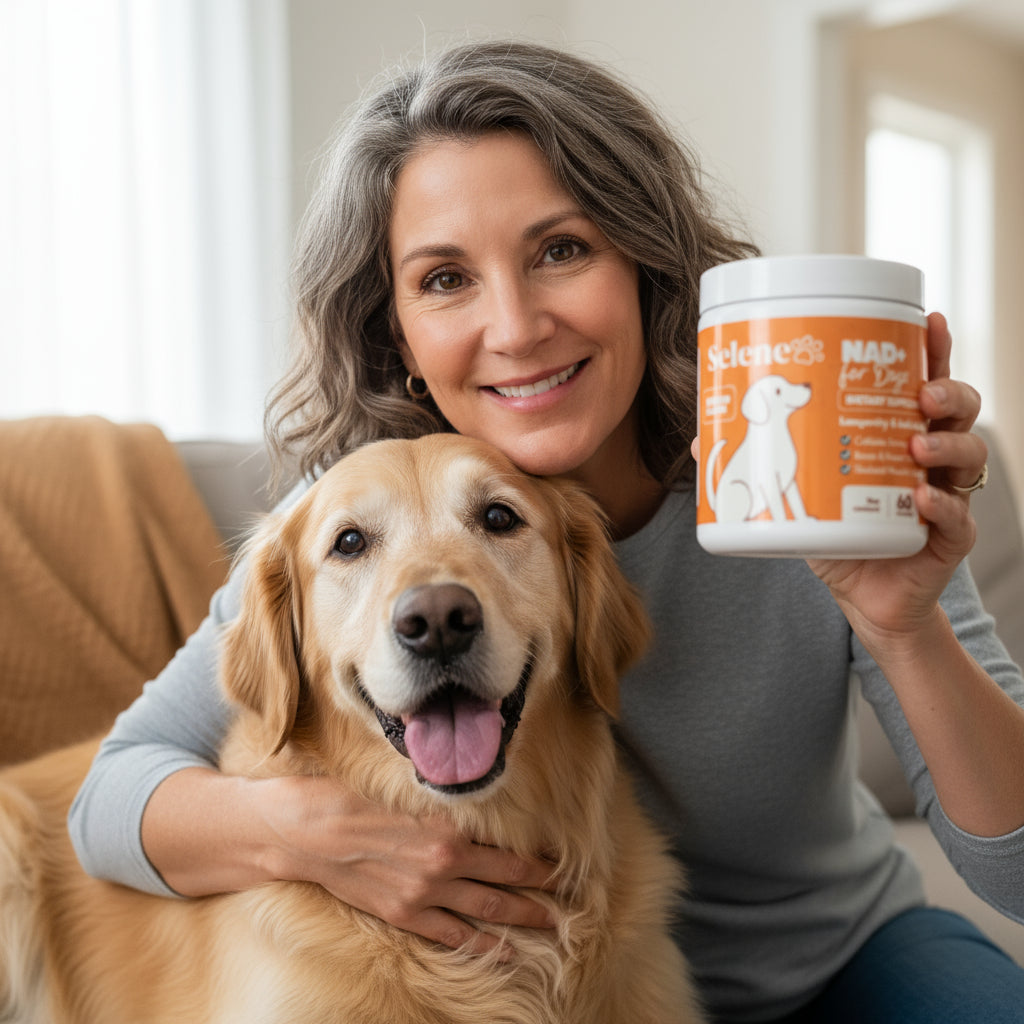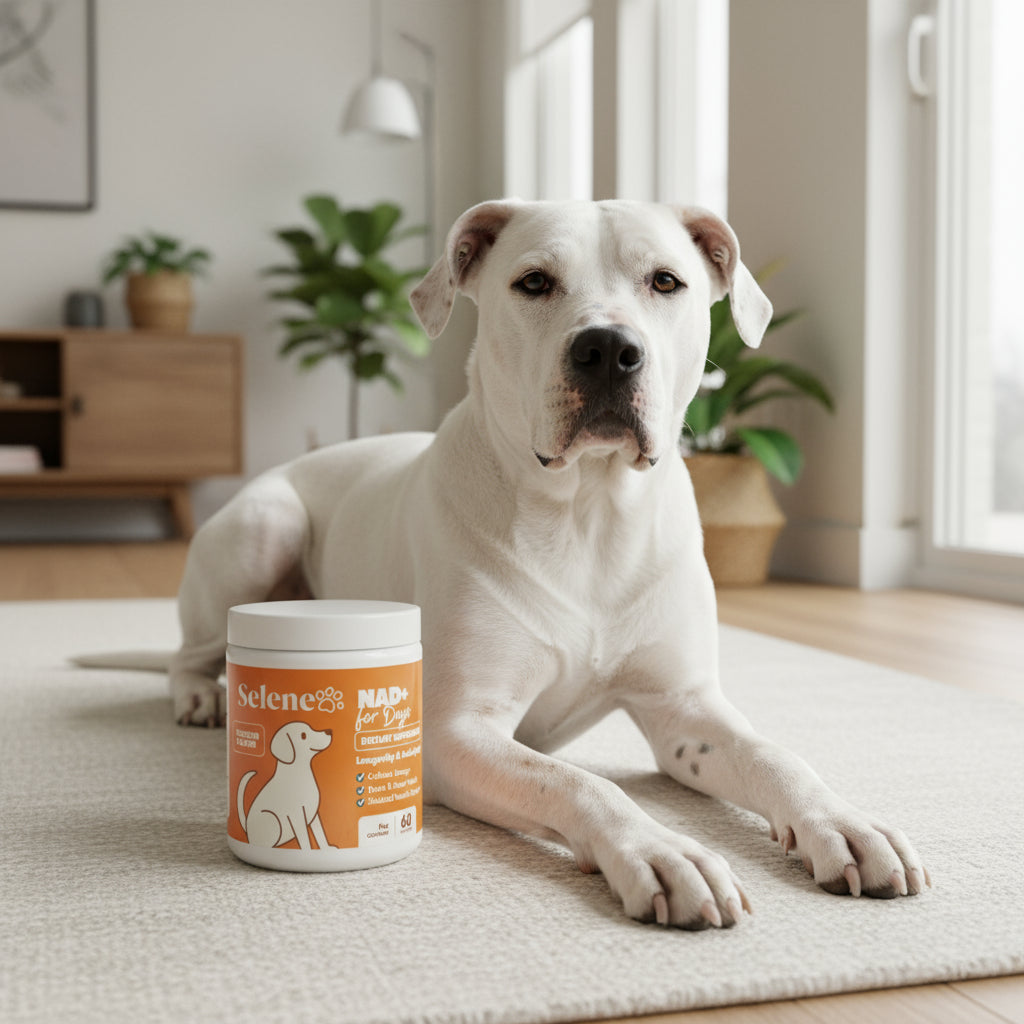 Inside every cell in your dog's body is a molecule called NAD+ (nicotinamide adenine dinucleotide). Think of it as the spark plug that keeps everything running: